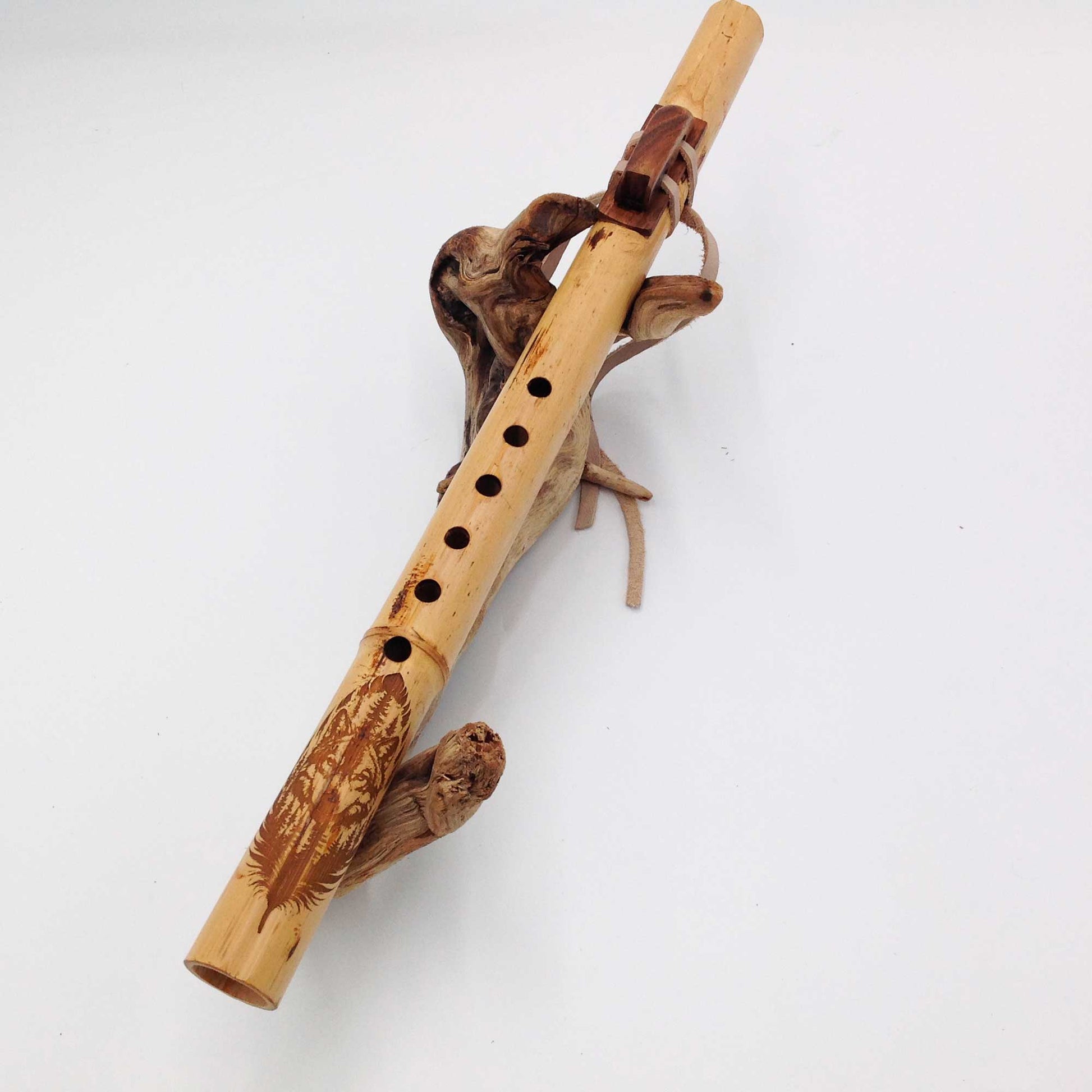 Découvrez la puissance et la douceur réunies dans cette flûte amérindienne artisanale en bambou naturel, ornée d’une gravure de loup symbolisant la force et l’instinct.